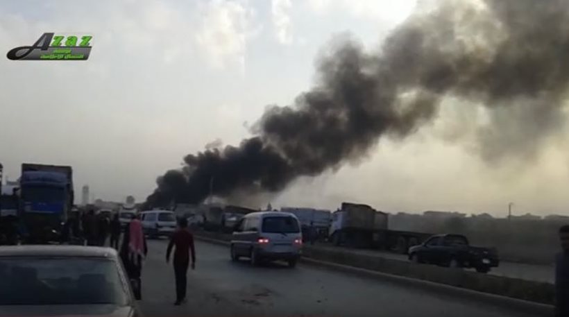Σύμφωνα με το βρετανικό παρατηρητήριο ανθρωπίνων δικαιωμάτων, τα ρωσικά αεροσκάφη χτύπησαν την πόλη Αζάζ, μόλις πέντε χιλιόμετρα από τα τουρκικά σύνορα, σκοτώνοντας πέντε ανθρώπους, μεταξύ των οποίων και ένα παιδί.