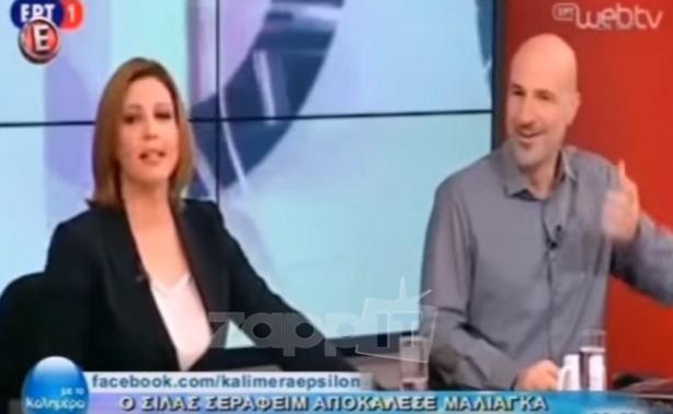 “Αν είναι δυνατόν η δημόσια τηλεόραση να μην κάνει τηλεθέαση”!». Σε αυτό το σημείο εμφανίστηκε ο τρίτος της παρέας, Σίλας Σεραφείμ, για να ακολουθήσει ο εξής διάλογος: